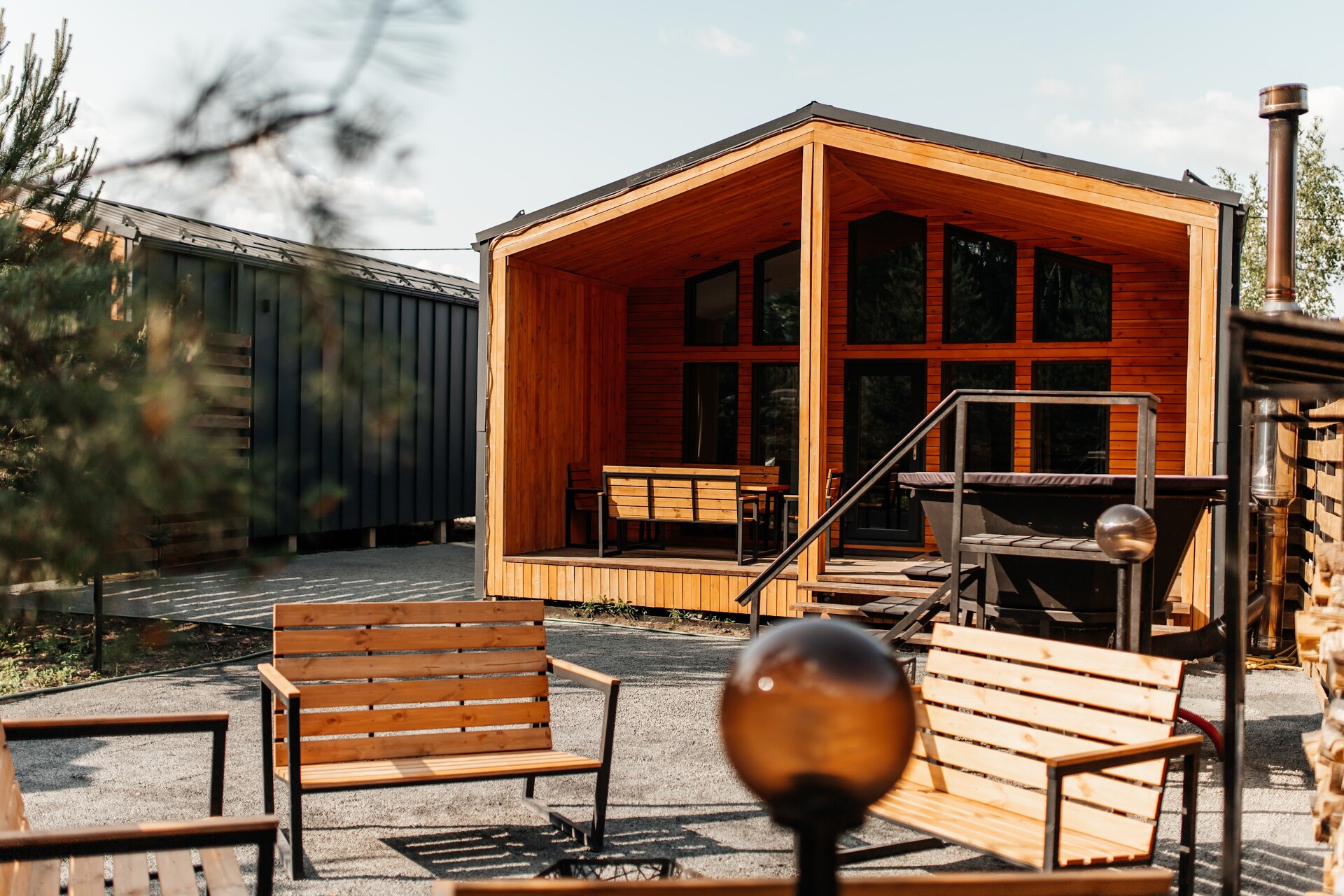 Каждый домик оборудован индивидуальным банным чаном, мангальной и костровой зоной